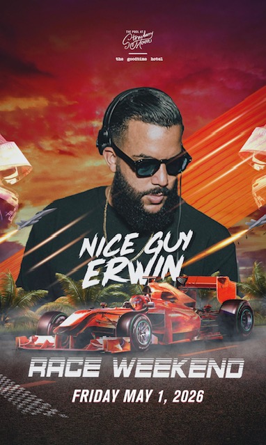 Turn up the heat for Formula 1 Miami Grand Prix weekend at Strawberry Moon as NICE GUY ERWIN takes over for a high-energy daytime pool party at The Goodtime Hotel.
