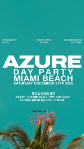 Kick off your Saturday in true Miami style at Azure Day Party, an elevated poolside experience at Strawberry Moon. Dive into a full day of sunshine, refreshing cocktails, and high-energy vibes with sounds by Ayjay, Gianni Glo, PMF, McCain, Nudos, Reid Radke, and Stone.